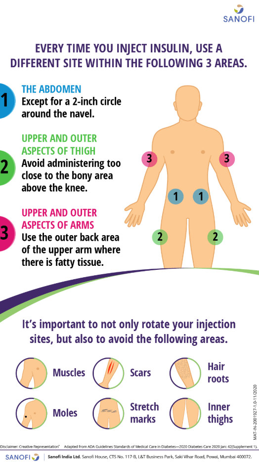 Pumps: Â An alternative to injections is the pump. The pump is a computerized device, about the size of a beeper or pager, often worn on a belt or in a pocket. The pump delivers a continuous low (basal) dose through a cannula (a flexible plastic tube), which attaches to the body through a small needle inserted into the skin. The cannula is taped in place and the needle is removed. Common insertion sites on the body include the thighs, buttocks, abdomen, upper arms, and other areas with fatty tissue. Â When a person wearing a pump eats, she pushes a button on the pump to deliver an extra amount, called a bolus, to provide insulin for their food. (Breakthrough T1D)